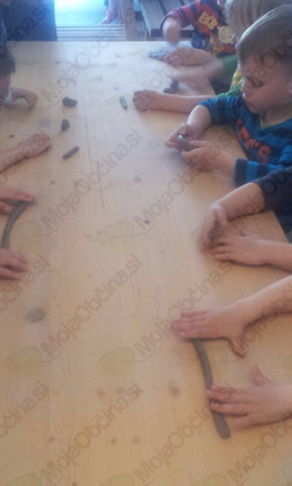 Danes so nas obiskali Zajčki iz Vrtca Križe. Najprej so pridno poslušali in se pogovarjali o glini, potem pa je 17 parov radoživih rok ob pomoči Barbare ter vzgojiteljic Andreje in Marije ustvarilo kup mojstrovinic. Glina je res zanimivo, univerzalno gnetivo!