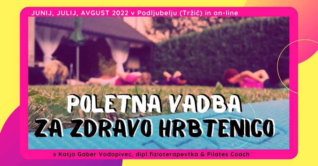 Ker je poletje idealen čas za gibanje v naravi, ampak SAMO S SPREHODI IN POHODI ne morete razgibati čisto vseh sklepov in okrepiti čisto vseh mišic, vas vabim, da se mi pridružite na urah vadbe za zdravo hrbtenico v naravi, kjer boste ponovno dobili nazaj svoje gibčno telo, čvrste mišice in noči kvalitetnega spanja.