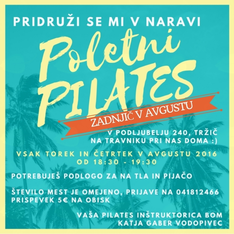 Poletje je idealen čas za #gibanje na svežem zraku, zato te še vedno vabim, da se nam pridružiš na POLETNEM PILATESU v TOREK od 18:30-19:30 pri meni doma (#Podljubelj 240, #Tržič). Naš travnik je odličen za izvajanje Pilatesa ;)