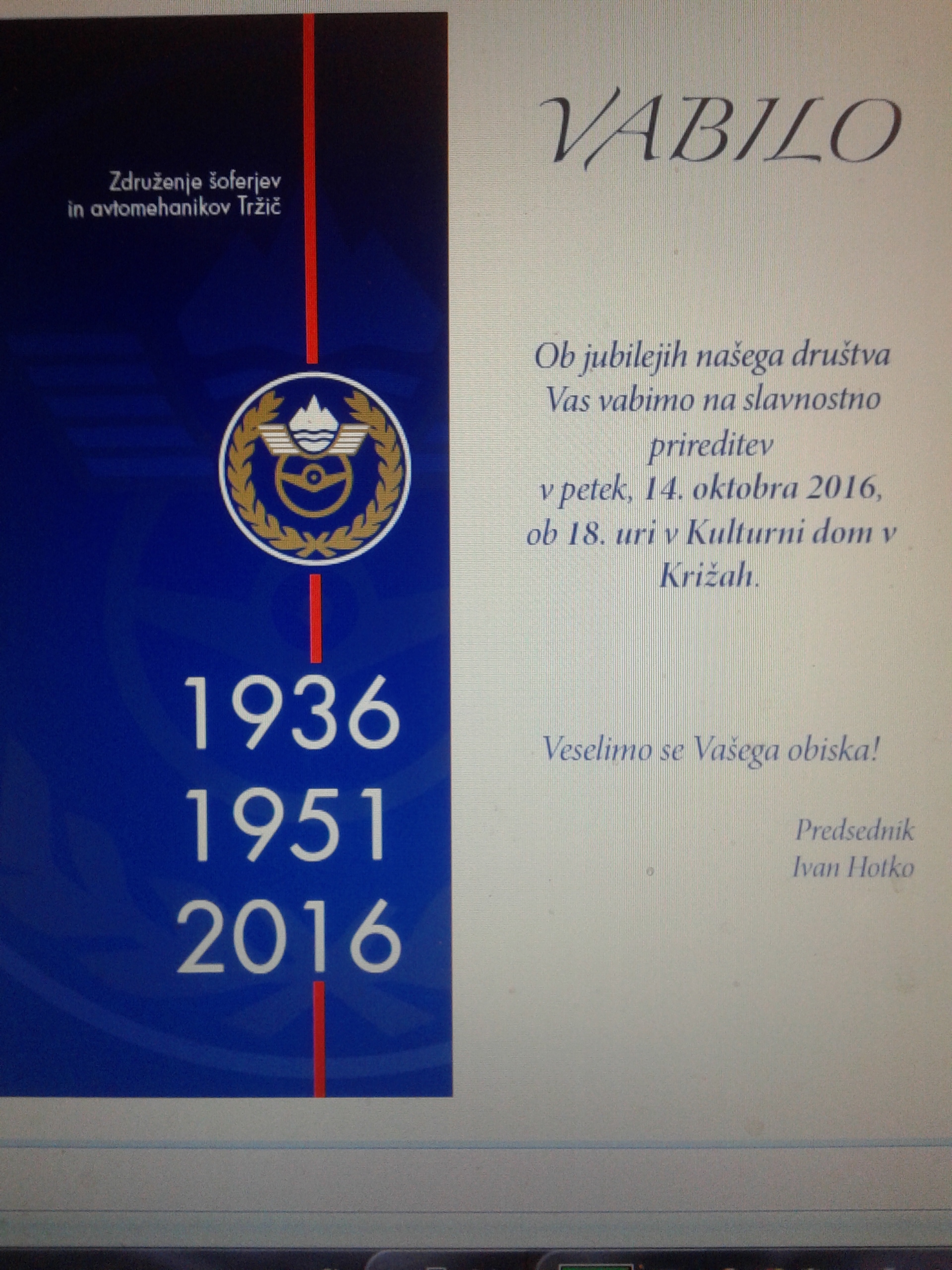 V letošnjem letu praznujemo v Tržiču 80 let od ustanovitve podružnice Zveze šoferjev Dravske banovine z uradnim imenom »Zveza šoferjev Dravske banovine – podružnica Tržič« (23. marec 1936). Znani ustanovitveni člani, pa so Jože Goričan, Stanko Stepančič in Konrad Šarabon.