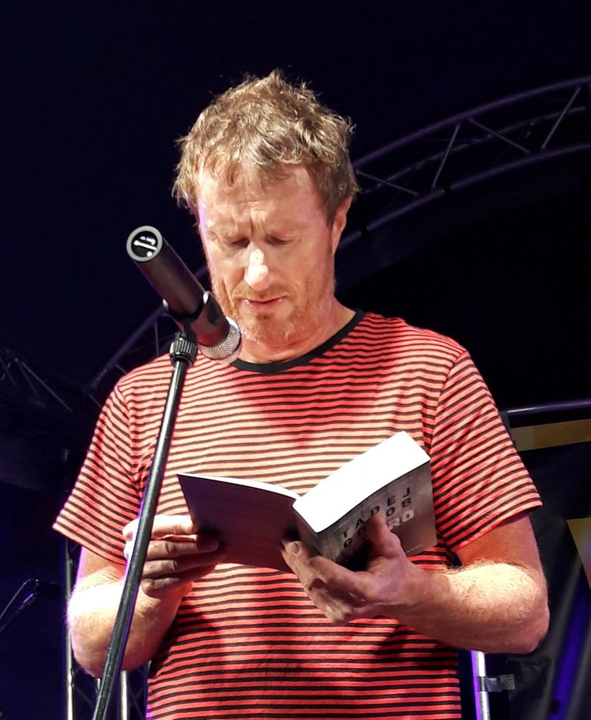Tadej Golob je avtor uspešne kriminalke Jezero. Pred tem je napisal osem knjig; velja za mojstra biografij, odmevne so bile njegove kolumne v reviji Playboy (zbrane v knjigi Moške svinje) in intervjuji, zaradi katerih je bil Playboy – dokler je pisal zanj – zelo bran. Kot plezalec je bil na mnogih najvišjih vrhovih sveta – od Himalaje, kjer je stal na vrhovih dveh osemtisočakov, Daulagirija in Everesta, do enega najtežjih andskih vrhov, Taullirajuja v Južni Ameriki. Pred tem je nekaj časa delal v športnem programu TV Slovenija, bil nato urednik revije za avtomobilistične in motociklistične športe Grand Prix in urednik alpinistične revije Grif, pa tudi poljudnoznanstvene revije Geo. Je prejemnik nagrade kresnik za roman Svinjske nogice in nominiranec za Ali boma ye! in Jezero. Pravi, da dela le tisto, v kar verjame in da je pisanje garanje, vendar umetnost pisanja uspešno združuje s svojim pestrim družinskim življenjem. Večer v njegovi družbi bo zabaven in zgovoren, tak, kot je avtor sam, pravi urednica Jedrt Jež Furlan, ki se bo z njim pogovarjala. Z avtorjem se ne bi mogli srečati ob bolj primernem času, saj 22. decembra na male ekrane prihaja nadaljevanka Jezero, posneta po njegovem istoimenskem kriminalnem romanu. Prepričani smo, da bo tak ustvarjalec pustil globok vtis. Kdo ve, morda bo pri nas dobil idejo za naslednji primer inšpektorja Birse.