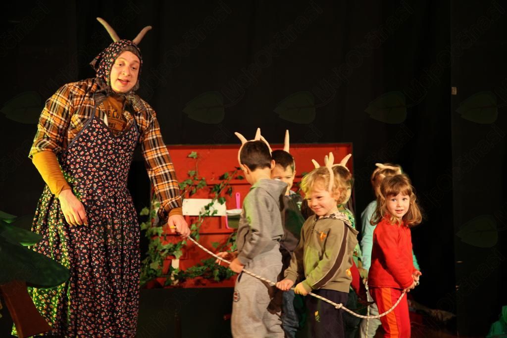 Gledališče iz kovčka je interaktivna, otroška gledališka predstava z enim igralcem, ki obnavlja znane Grimmove pravljice. V svoji interaktivnosti predstava raziskuje skrajne meje in določene prizore uprizarja s pomočjo otrok. Celoten avditorij postopoma spremeni v gledališki orkester, ki soustvarja predstavo. Otroci tako poskrbijo za zvočno kuliso v prizorih, oživljajo predmete in se preizkusijo tudi kot igralci (7 kozličkov, 7 palčkov). Osnovni okvir zgodbe je enostaven: Igralec s svojim kovčkom potuje iz pravljico, iz predstave v predstavo, kjer skupaj s svojim prijateljem Volkcem (lutka) in z otroki gledališko obnavlja znane pravljice. (Trnuljčico, Pepelko, Rdečo kapico, Volka in sedem kozličkov in Sneguljčico).