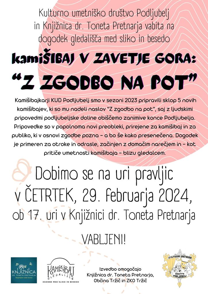 V knjižnico zopet prihaja kamišibaj, preprosta zvrst potujočega gledališča med besedo in sliko. Kamišibajkarji KUD Podljubelj so pripravili sklop petih novih kamišibajev, ki so mu nadeli naslov Z zgodbo na pot.