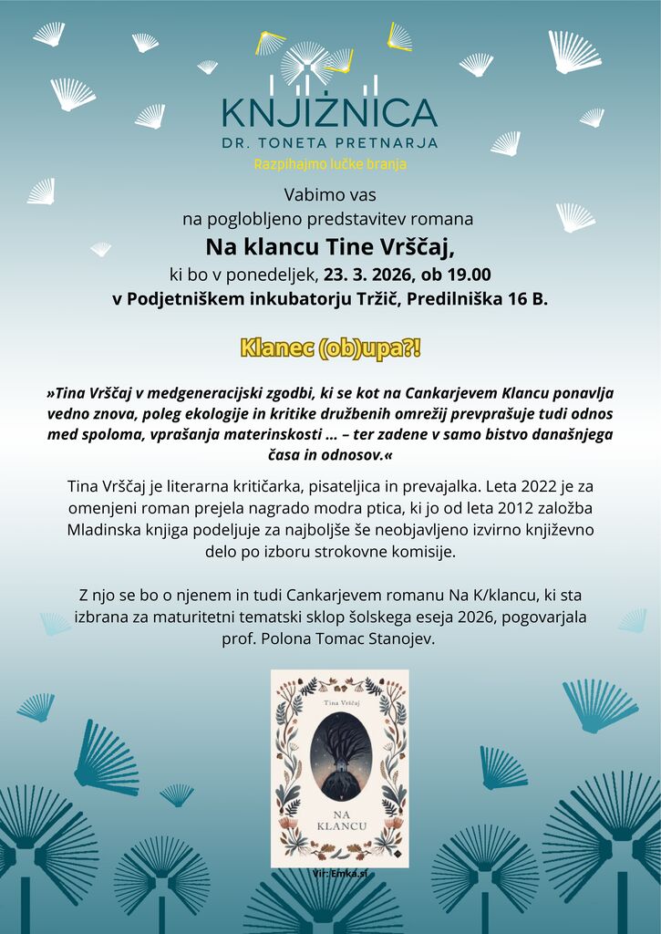 na poglobljeno predstavitev romana Na klancu Tine Vrščaj,
