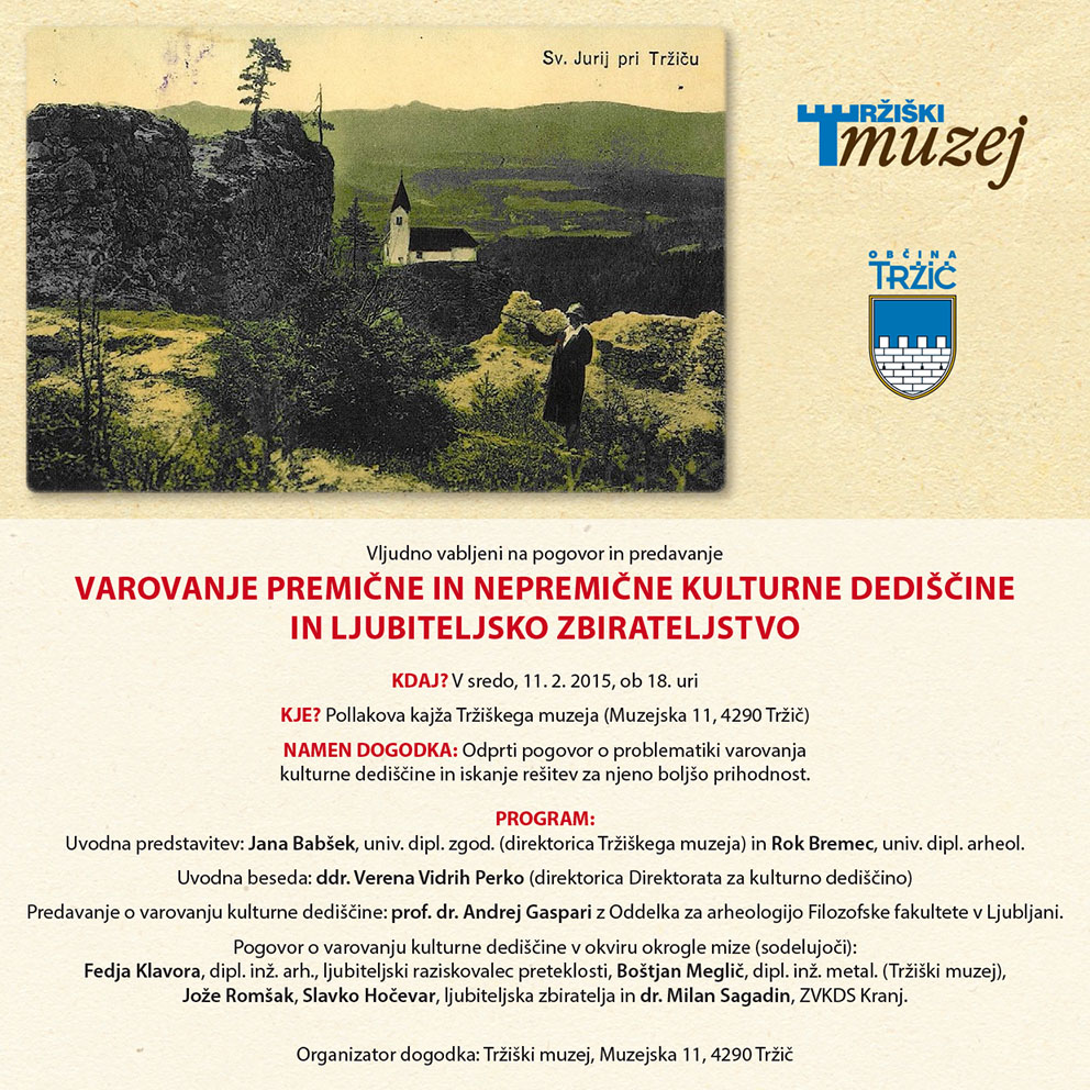 Vabljeni na predavanje na temo varovanja kulturne dediščine z direktorico Direktorata za kulturno dediščino ddr. Vereno Vidrih Perko, ter prof. dr. Andrejem Gasparijem iz Fakultete za arheologijo. V kolikor ste ljubiteljski raziskovalec in zbiratelj, vas vabimo, da se nam pridružite pri izmenjavi naših in vaših mnenj, razmišljanj, vedenj...