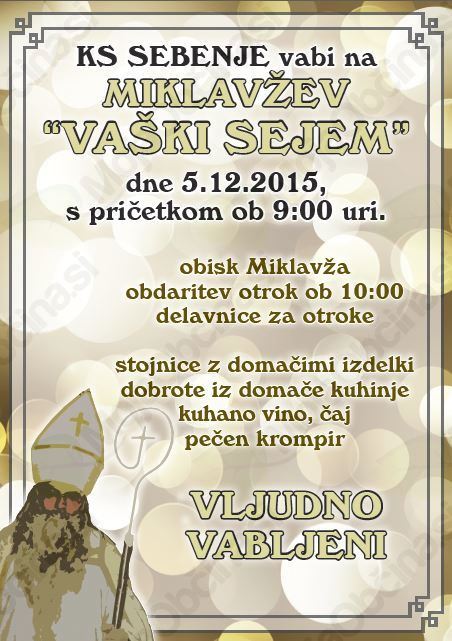 KS Sebenje vas vabi v soboto 5. decembra v središče vasi Sebenje na tradicionalni Vaški sejem.