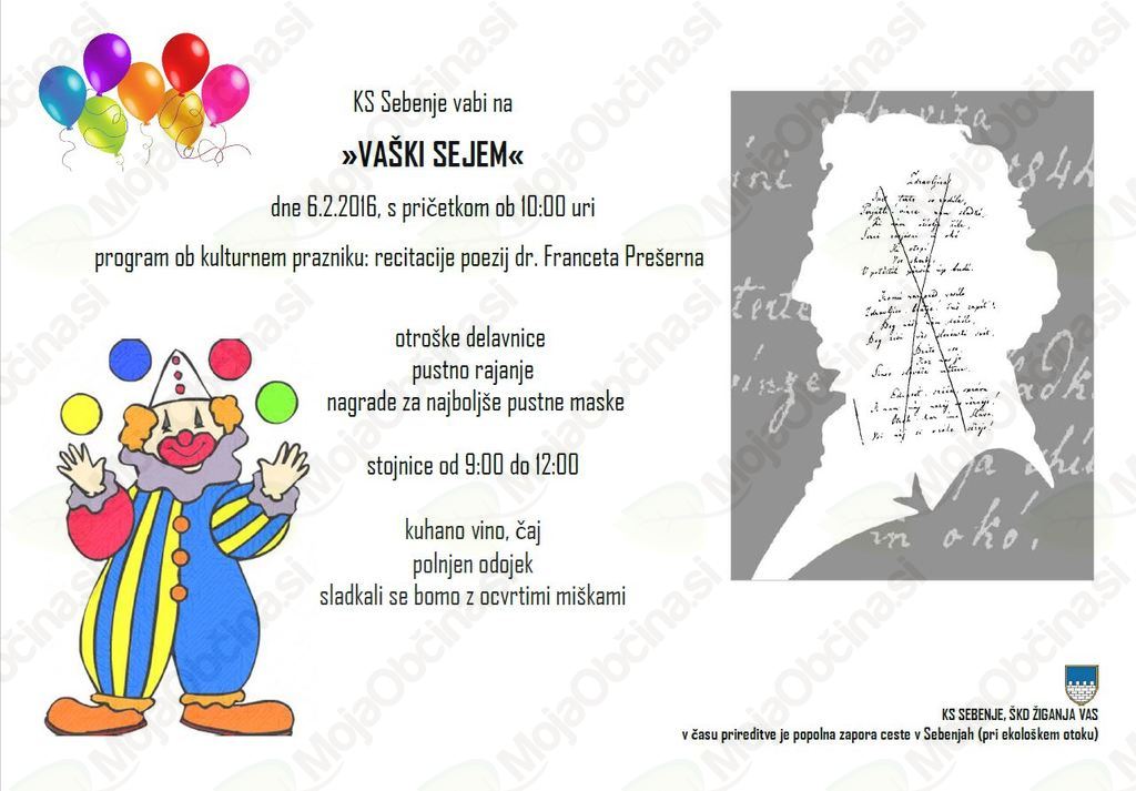 V soboto 6.2.2016, vas KS Sebenje ponovno vabi na tradicionalni Vaški sejem.