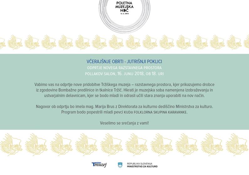 Vabimo vas na odprtje nove pridobitve Tržiškega muzeja - razstavnega prostora, kjer prikazujemo drobce iz zgodovine Bombažne predilnice in tkalnice Tržič.
