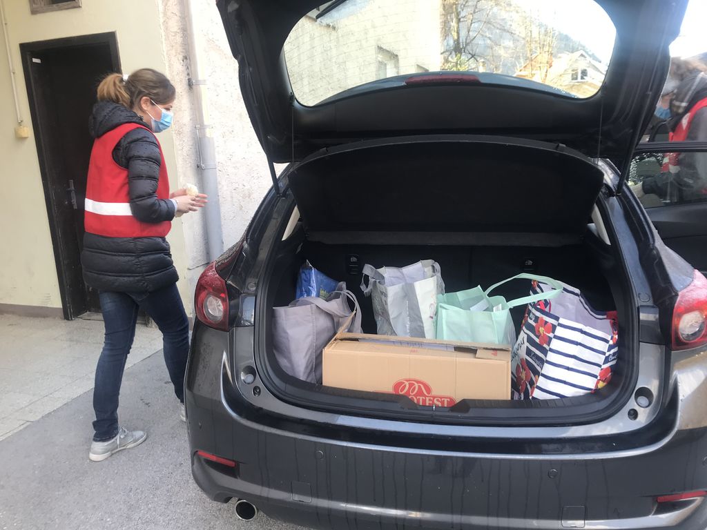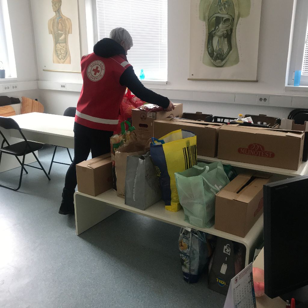 Na Rdečem križu Tržič že od 16. marca sodelujejo s Štabom Civilne zaščite Slovenije in Rdečim križem Slovenije. Od 16. 3. do 18. 3. so bili bolničarji - člani ekipe prve pomoči RK Tržič vpoklicani v dežurstvo oz. merjenje temperature na mejnem prehodu Rateče, od 26. 3. dalje pa redno merijo temperaturo in preverjajo potnike na mejnem prehodu Karavanke. V tem času so skupaj opravili 202 prostovoljni uri, aktivnih je osem prostovoljcev.»V skladišču delamo po ustaljenem urniku. Prehranske pakete delimo vsak ponedeljek in sredo, od 9. do 11. ure. Vsak dan dopoldan smo po telefonu na voljo za psihosocialno pomoč.  Starejšim, obolelim in tistim, ki nimajo lastnega prevoza, smo razdelili 43 prehranskih paketov, prav tako maske, ki so nam jih za socialno ogrožene podelili na Civilni zaščiti Občine Tržič in župan. Povezali smo se s Župnijsko Karitas Bistrica pri Tržiču in si jih razdelili na polovico. 52 zaščitnih mask smo razdelili socialno ogroženim, starejšim nad 65 let,« pravi Noelle Kavčič, sekretarka Območnega združenja Rdečega križa Tržič.