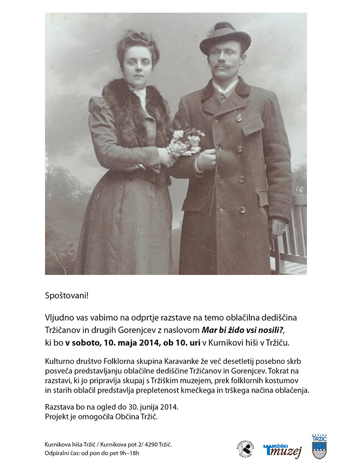Na razstavi, ki si jo do konca junija lahko ogledate ob predhodni najavi na trziski.muzej@guest.arnes.si ali 04/53-15-500, je mogoče videti folklorne kostume KD FS Karavanke, stara oblačila iz zbirke Tržiškega muzeja in iz zasebnih zbirk in pa zanimiva oblačila ter druge predmete, namenjene urejanju osebnega videza. Še posebej so zanimivi razstavljeni predmeti, ki so se ohranili v eni izmed hiš na Glavnem trgu, kjer za dediščino izjemno lepo skrbita Maja in Matjaž Simon.