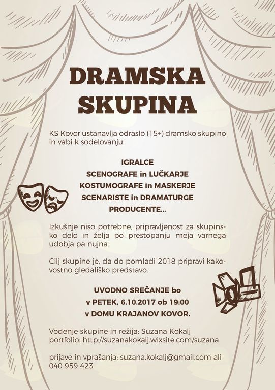 KS Kovor ustanavlja odraslo (15+) dramsko skupino in vabi k sodelovanju: