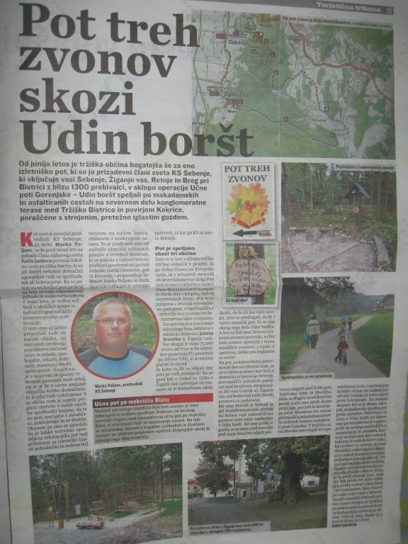 V današnji številki (9. 10. 2014) Slovenskih novic, je na strani Turistična tribuna objavljen članek avtorja Borisa Dolničarja o Poti treh zvonov. Priporočam v branje.
