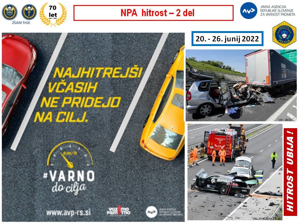 V ponedeljek, 20. junija 2022 se je začel drugi del od treh letošnjih nacionalnih preventivnih akcij Hitrost, ki jih koordinira Agencija za varnost prometa (AVP) v sodelovanju s Policijo. Potekala bo do nedelje, 26. junija 2022.
