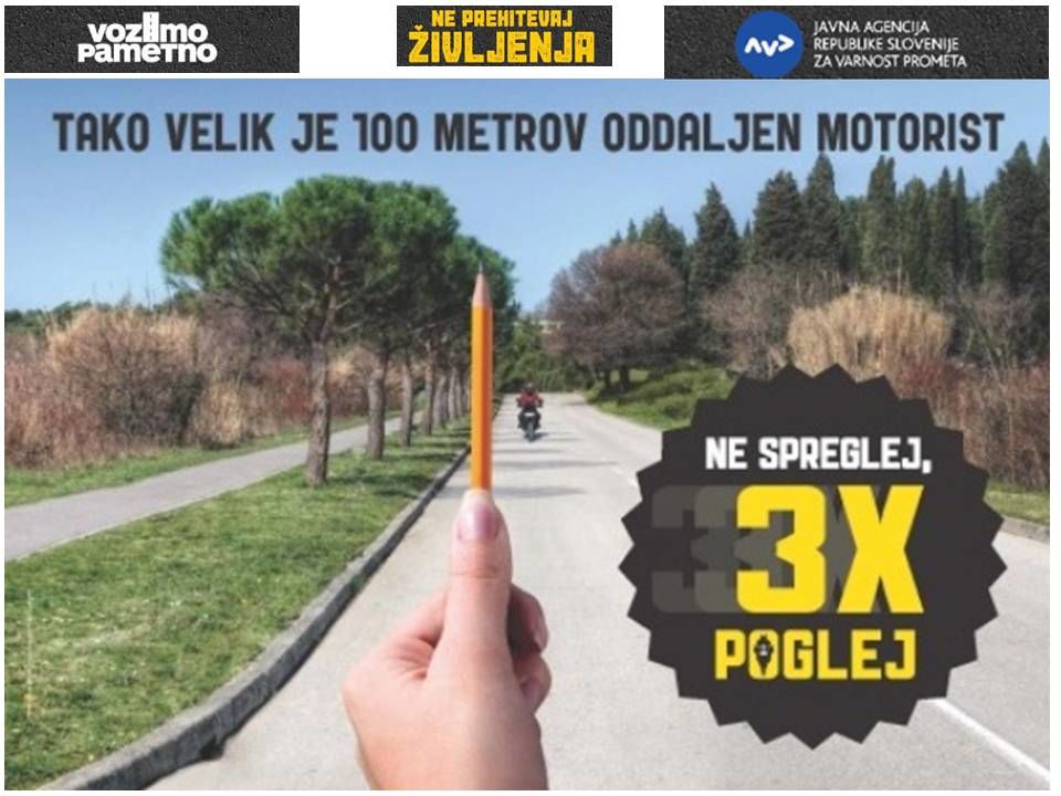 Pred pričetkom nove sezone motoriste opozarjamo, da so skrajno previdni. Spomladi je asfaltna površina še vedno hladna in ne omogoča optimalne oprijemljivosti pnevmatik, zato je dodatna previdnost nujna. Poleg tega je zaradi zime na vozišču veliko poškodb in posipnega materiala. Pred vsako vožnjo preverite tudi tehnično brezhibnost vašega jeklenega konjička. Vožnjo prilagodite svojim sposobnostim obvladovanja motorja, ki niso na ravni lanske jeseni. Voznikom motoristom tudi priporočamo, da se večkrat udeležijo dodatnega usposabljanja in kondicijskih voženj, ter da se dodatno poučijo o največjih pasteh za motoriste (polaganje ovinkov, prehitra vožnja, izsiljevanje prednosti, nečisto cestišče, mokro in vlažno cestišče …)
