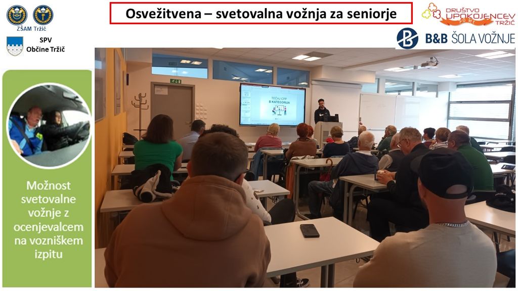 V četrtek, 16. maja 2024, ob 9:00, smo se na lokaciji Šole vožnje B&B, Ljubljanska cesta 30, Kranj, voznice seniorke in vozniki seniorji udeležili osvežitvene/svetovalne vožnje.