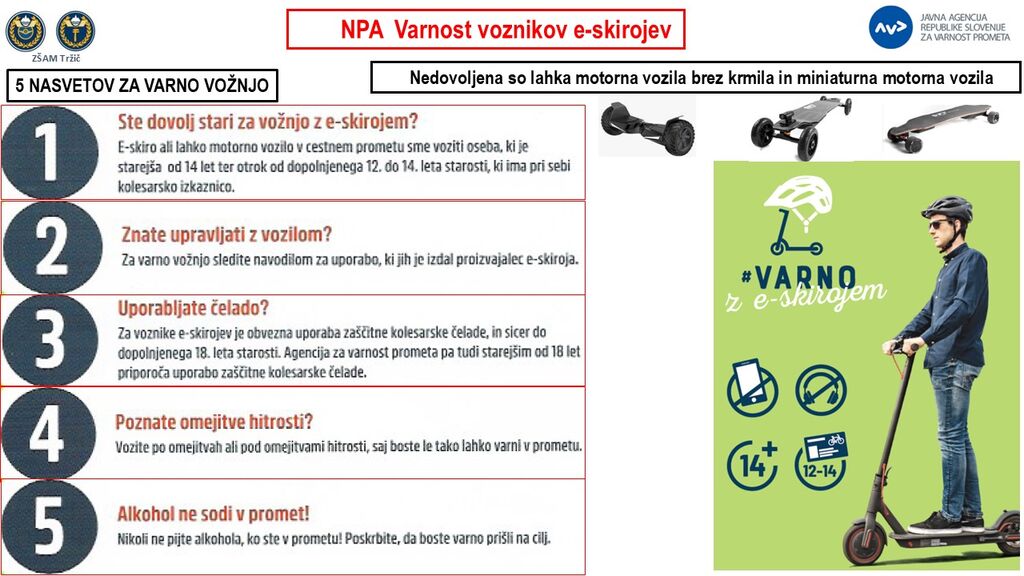 Z e-skirojem se je prepovedano voziti po pločniku in izven naselja, kjer je dovoljena višja hitrost kot 50 km/h.