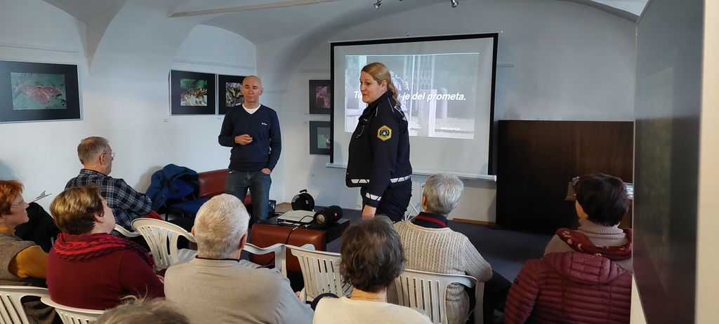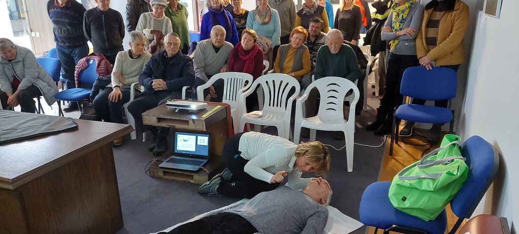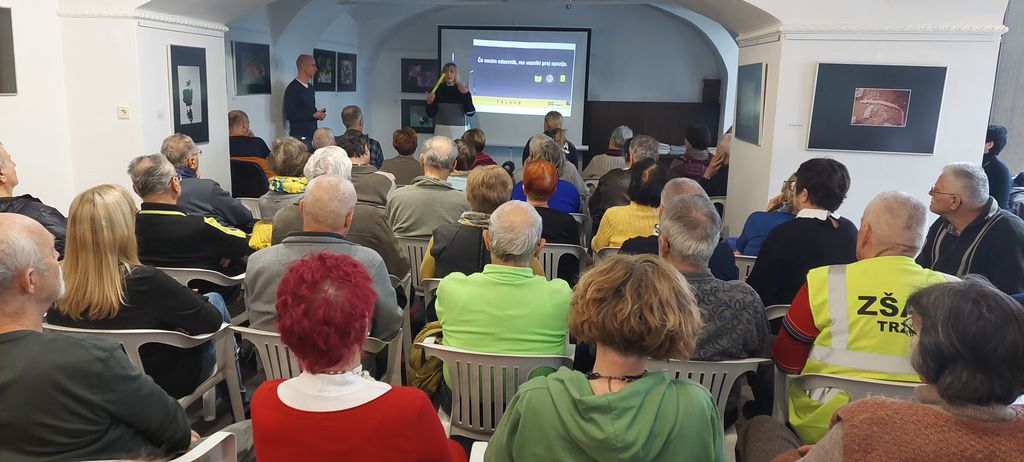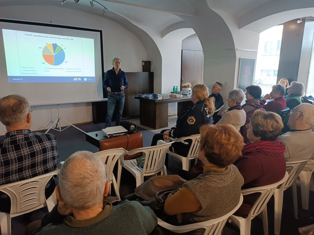 Dogodek smo zaradi velikega števila prijavljenih (60) izvedli v prostorih galerije v atriju občine Tržič. 58 udeležencev je bilo deležnih zanimive izvedbe planiranih vsebin dnevnega reda, ki so jo zagotovili gospod Sebastijan Turk (Agencija republike Slovenije za varnost prometa), gospa Jasmina Gorenčič (policijska postaja Tržič), gospa Nataša Kovše (DARS) in gospa Nataš Kavar (Zdravstveni dom Tržič).