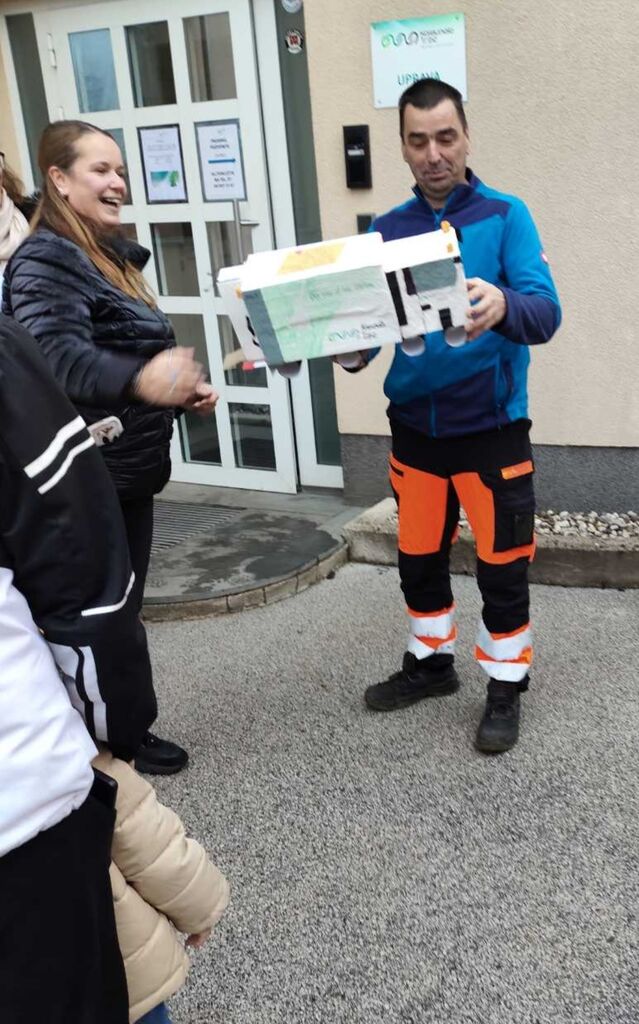 presenečenje – smetarski tovornjak, ki smo ga izdelali sami in vanj vložili kar