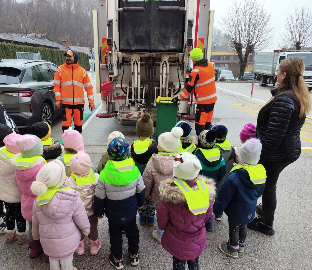 dvignejo kanto za smeti. Otroci so bili nad prikazom navdušeni in polni novih