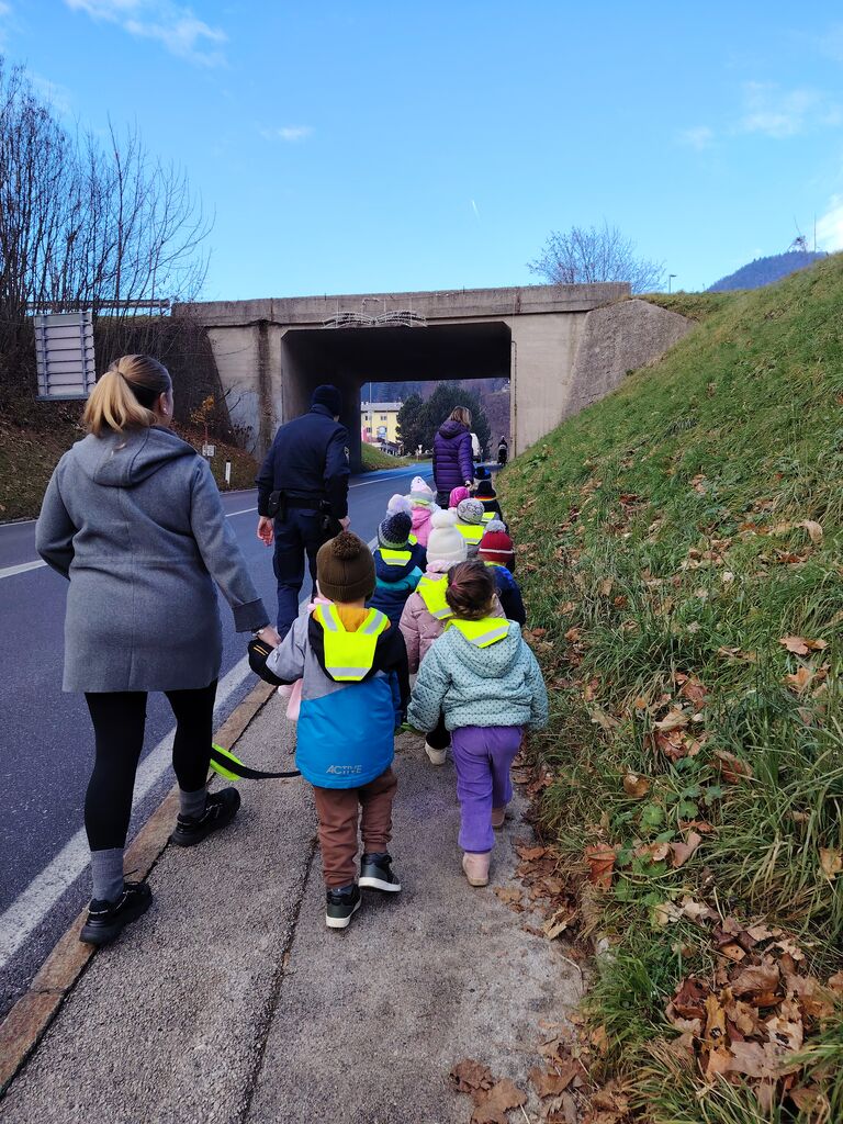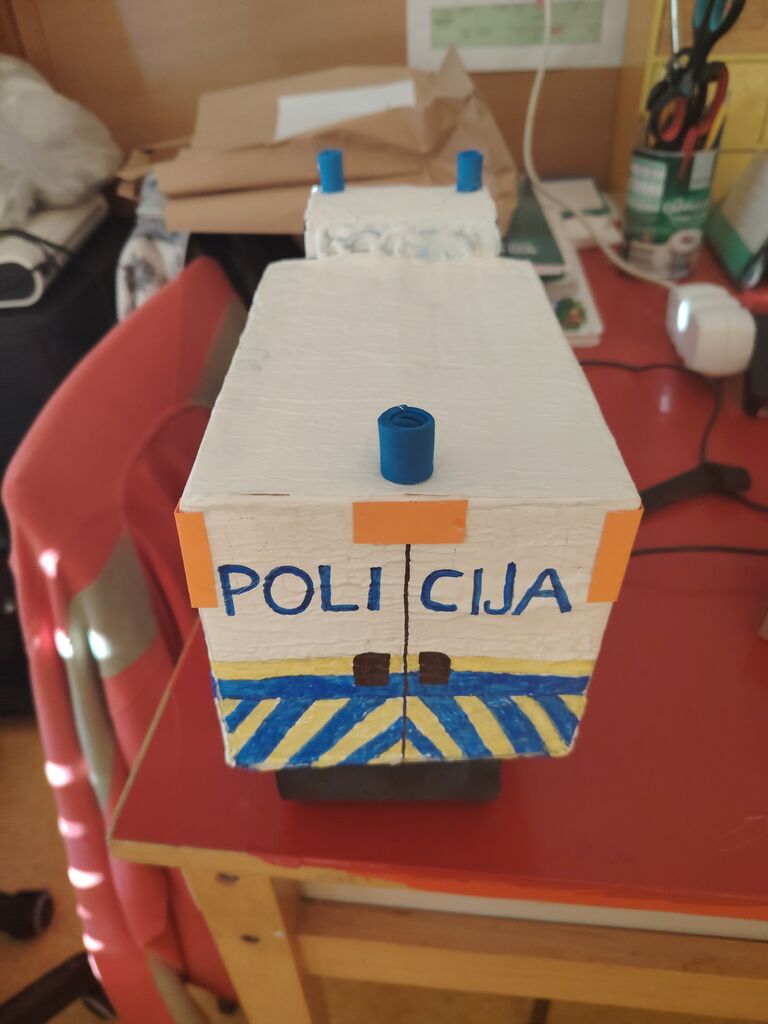 Policistom smo se želeli zahvaliti na poseben način, zato smo jim podarili policijski kombi (marico), ki smo ga izdelali sami, da jim bo ostal za spomin na naše druženje, majhno namizno dekoracijo ter piškotke, da se bodo lahko nas postaji malo posladkali. Daril so bili zelo veseli, prav tako pa tudi našega obiska, ki jim je polepšal delovni dan. Policist Andraž se je z nami odpravil na sprehod, kjer nas je še dodatno poučil o varnosti v prometu.