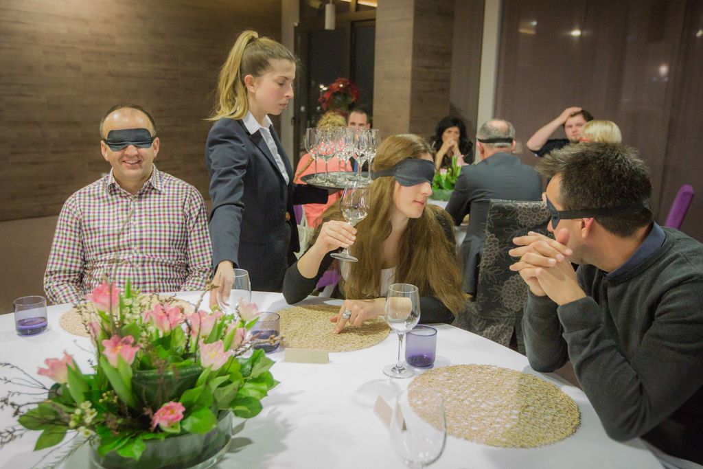 »Usposabljanje je bilo izvedeno tako, da so udeleženci, ki so sicer tudi sami gostinski delavci, prevzeli začasno vlogo slepe in slabovidne osebe ter bili na ta način pospremljeni k mizi in večerji. Pri vsakem hodu so bile obrazložene specifike v strežbi in plasirane napake. Ob sladici je strokovna sodelavka in delovna terapevtka Denis Kamnar, podala komentar izvedbe. Udeleženci so v sklepni fazi dogodka sneli preveze oz. očala, ki simulirajo slepoto ter podali povratno informacijo,« usposabljanje opisuje predavateljica in mentorica Darija Cvikl, ki je zadovoljna, da so študentke in študenti pokazali izjemen posluh za projekt usposabljanja gostinskega osebja za delo z gosti s posebnimi potrebami. Še posebno zadovoljstvo predstavljajo pohvale in izredno pozitiven odziv gostov, ki so ga podali takoj po izvedenem dogodku s prošnjo, da naj ta projekt živi tudi prihodnja leta.