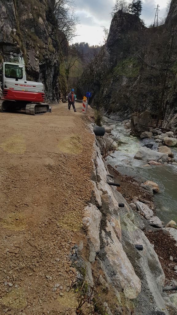 Gradbeniki  Vodnogospodarskega podjetja iz Kranja so dva največja usada za tunelom že sanirali in v makadamski izvedbi vzpostavili interventni južni dostop do vasi Jelendol.