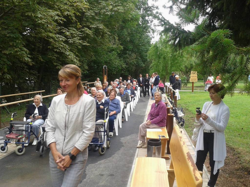 Ps. vadbišče je iz slovenskega lesa, odprla pa ga je stodveletnica Metka Kavčič z vriskanjem.