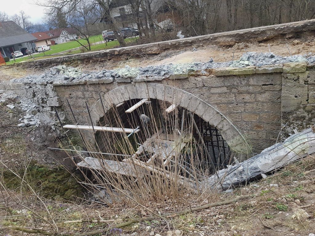 Sebenje - Žiganja vas - Zadraga: obnova spomeniško zaščitenega kamnitega mostu s pripadajočim voziščem je v teku.