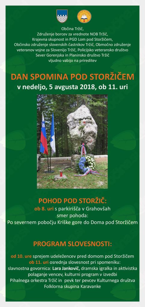 V nedeljo, 5. avgusta ob 11. uri vabljeni na spominsko slovesnost Dan spomina na prve žrtve pod Storžičem.