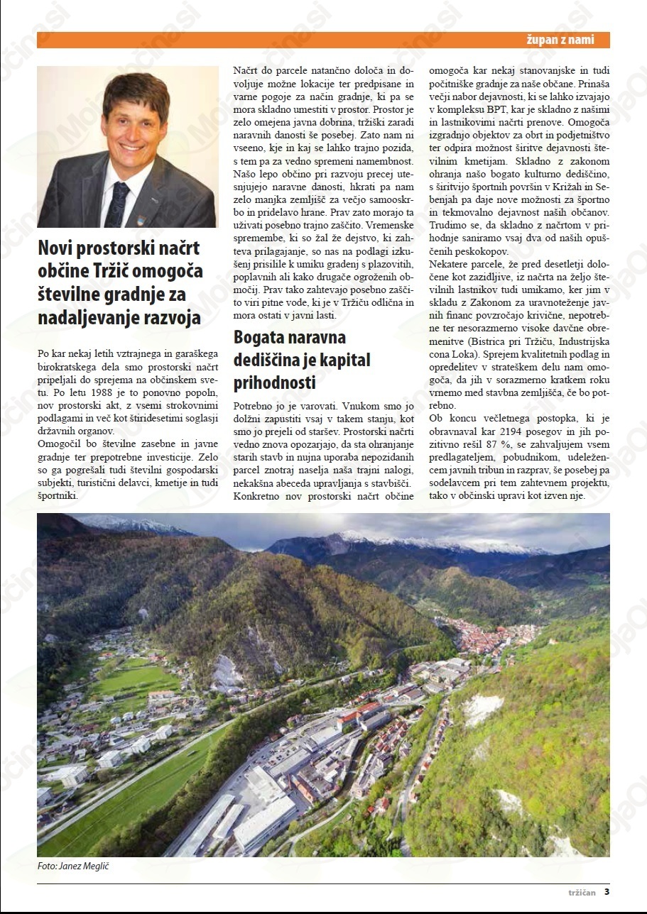 V majskem uvodniku Tržiča je župan mag. Borut Sajovic pisal o novem prostorskem načrtu Občine Tržič, ki omogoča številne gradnje za nadaljevanje razvoja.