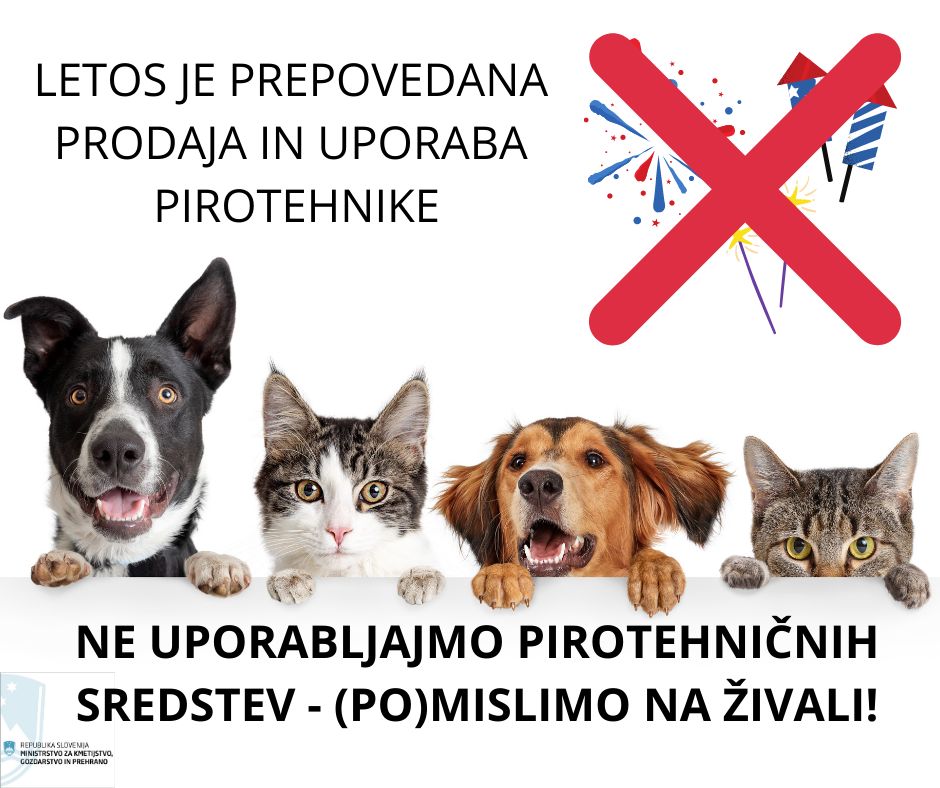 Vlada RS je med letošnjimi prazničnimi dnevi prepovedala prodajo in uporabo pirotehnike ter prirejanje ognjemetov. Kljub temu obstaja bojazen, da se bodo posamezniki odločili za uporabo pirotehničnih sredstev. Ministrstvo za kmetijstvo, gozdarstvo in prehrano zato opozarja, da uporaba pirotehničnih sredstev po nepotrebnem vznemirja in povzroča trpljenje živali.
