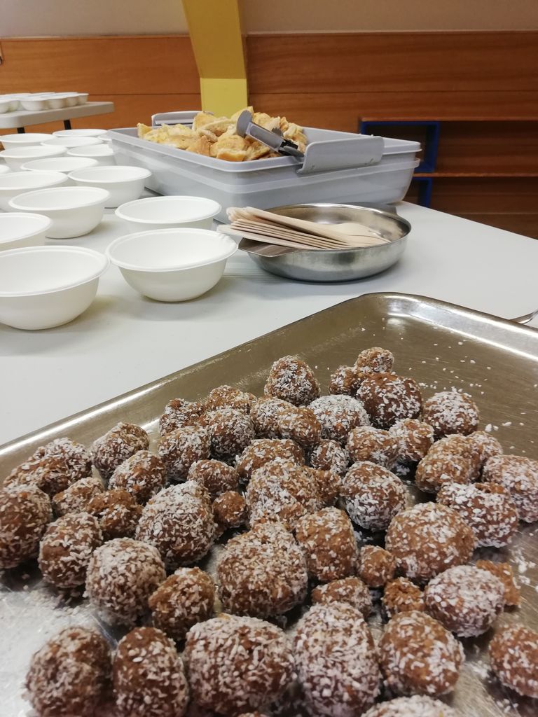Spoznali smo jedi in recepte. Najprej smo pripravili miške z jabolki. Spoznali smo recept, katerega smo kasneje poustvarili, tako da je bil ta lažje predstavljiv otrokom.