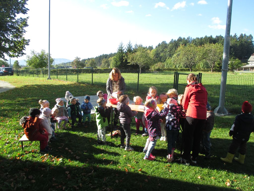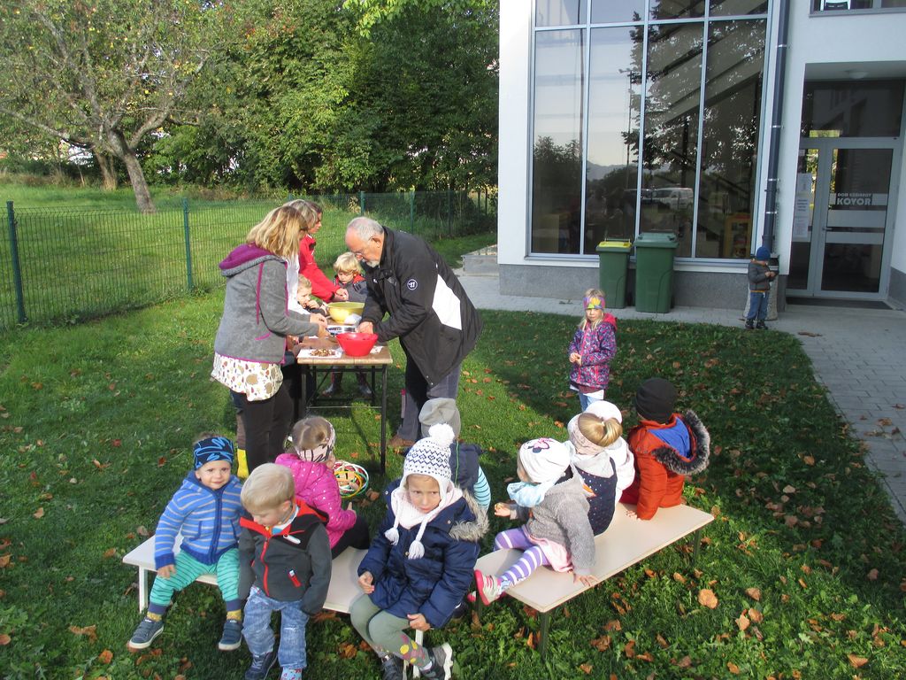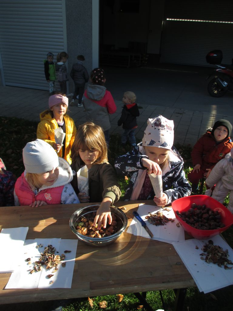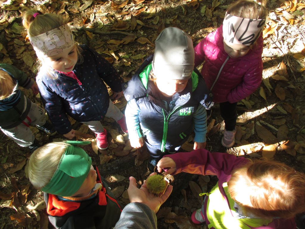 Naš kovorski vrtec stoji v bližini gozda, v katerem je veliko kostanja. Vsi otroci od najmlajših do starejših so se skupaj s strokovnimi delavkami odpravili v gozd po kostanj. Veliko smo ga nabrali. Skupaj s KS Kovor smo pripravili kostanjevo dopoldne. Mi smo kostanj skuhali, pri peki kostanja pa nam je pomagal gospod Marjan Tavželj. Z veseljem se je odzval našemu predlogu in nam spekel kostanj, ki smo ga vsi skupaj pojedli. Pogostili smo tudi predsednika KS in mimoidoče krajane. Bilo je lepo dopoldne, medsebojnega sodelovanja se veselimo tudi v bodoče. Hvala tudi našemu hišniku Tonetu, ki nam vedno priskoči na pomoč.
