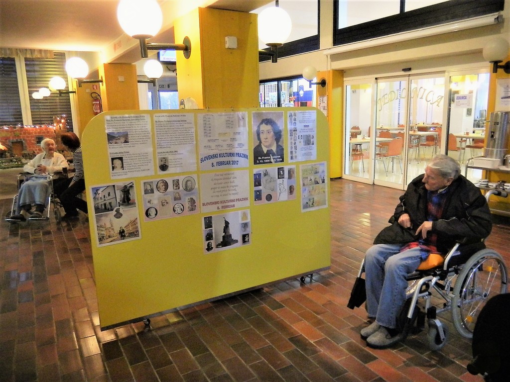 Več kot deset letno tradicijo ima praznovanje slovenskega kulturnega praznika v Domu Petra Uzarja Tržič. V krogu stanovalcev in svojcev nastopajoči pripravijo prijeten kulturni program, za katerega bo letos poskrbel ansambel Vaška godba. Najbolj pa so stanovalci vsako leto veseli obiska župana Občine Tržič mag. Boruta Sajovica, ki kar nekaj Prešernovih pesmi pove iz srca, v Prešernovem stilu pa prinese in obdaruje stanovalce s suhimi figami.