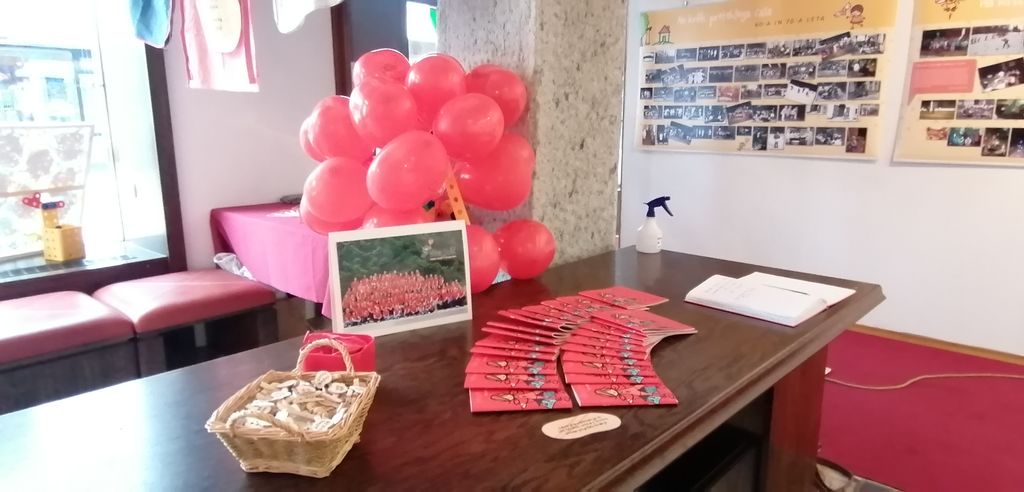 Po ogledu nam svoj spomin na vrtec in ogled razstave pustite v knjigi vtisov, vzemite rdeči balonček, ki si ga za hec napihnite doma in si z njim privoščite otroško veselje, pripnite si priponko s koščkom našega slogana "Veder polet v veliki svet"...
