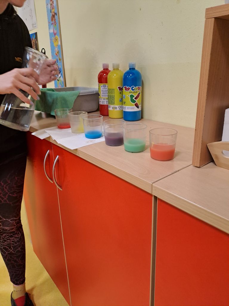Ali ste vedeli, da sladki pisani bomboni so prava čarovnija in da se jajce v vodi dvigne, ko se ga dotakne slana energija? Igrali smo se tudi barvno čarovnijo, ko smo iz različnih barv dobili novo barvno poezijo.