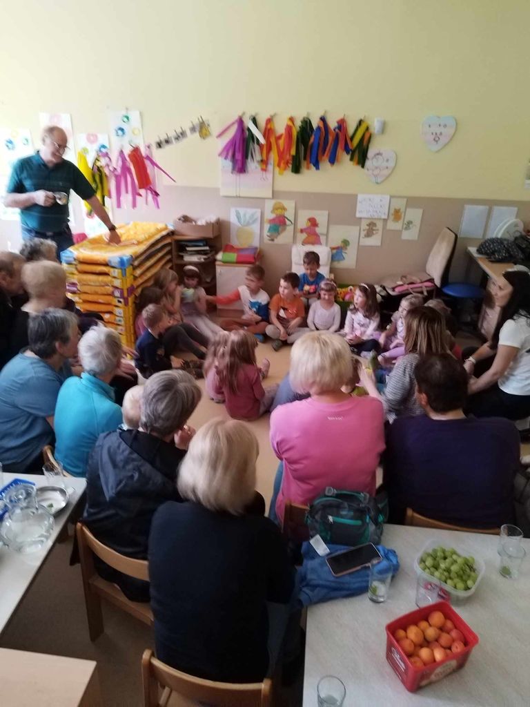V oddelku Vrtca Tržič v Lomu smo gostili stare starše. Z majhnimi pozornostmi smo jim želeli polepšati dan. Dopoldne je bilo glasbeno obarvano. Zapeli smo jim vse pesmice, ki jih radi prepevamo, oni pa so nas obdarili z dobrotami. Na njihovih pladnjih je omamno dišalo po krofih, češnjah in marelicah. Sledilo je druženje v sladkem kotičku. Skupaj smo preživeli sproščeno in zabavno urico. Posebno vez imajo stari starši s svojimi vnuki in tega se zavedamo tudi v vrtcu. Otroci so v kratkem nastopu »popihali« starim staršem na dušo in bili so veseli, da so jih obiskali in jih malo pocrkljali. Čas, ki ga preživimo v družbi najbližjih, ni nikoli izgubljen čas. Dan je bil resnično nepozaben, poln radosti in topline.