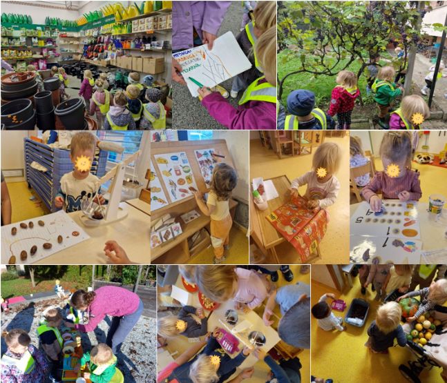 Raziskali smo vse trgovine v naši okolici, preverili, katere izdelke ponujajo, ter naše ugotovitve pisno »beležili«. Spremljali smo pot izdelka od trgatve do grozdnega soka: sami smo pobrali grozdje, ki je zraslo na trti strokovne delavke, ga dostavili do vrtca, očistili in izdelali napitek, s katerim smo se sladkali še naslednji dan. Pri našem projektu so sodelovati tudi starši. Mamica ene izmed deklic je na domačem dvorišču pripravila tržnico, na kateri so otroci nakupovali in plačevali z nabranimi želodi.