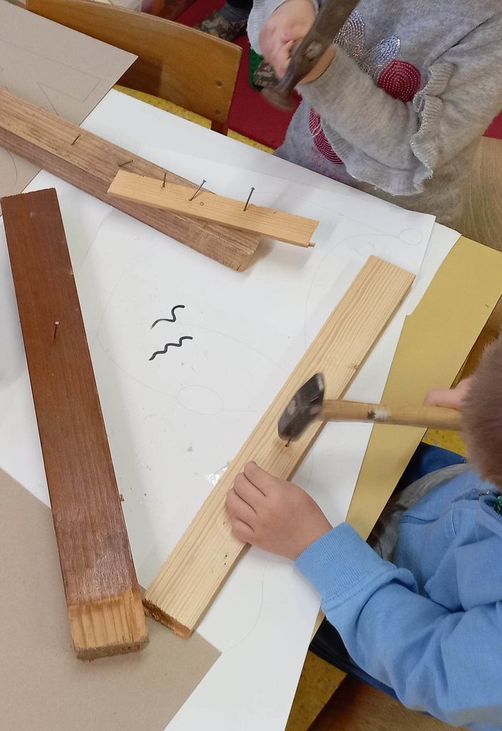V vrtcu smo se prelevili v prave kovače. Uredili smo kotiček s kovaškim orodjem ter pečjo, kjer smo pustili domišljiji prosto pot; kovali železo, zabijali žeblje, izdelovali žeblje in podkve. Ustvarjanje smo popestrili s socialno igro »en kovač«, kjer smo utrjevali skupinsko dinamiko. Ob spoznavanju lastnosti kovine in izdelkov iz železarske panoge smo se srečali tudi z drugimi materiali ter ugotavljali razlike med le-temi. V spomin na naše zabavno popotovanje pa smo izdelali tudi verižice z motivom podkve in štiriperesne deteljice. Slednji prineseta srečo le, če sta obrnjeni v pravo smer. Zakaj je temu tako, pa lahko vprašate otroke iz igralnice Pedenjped, zagotovo vam bodo znali povedati.
