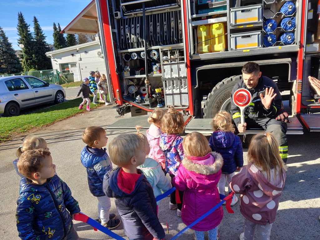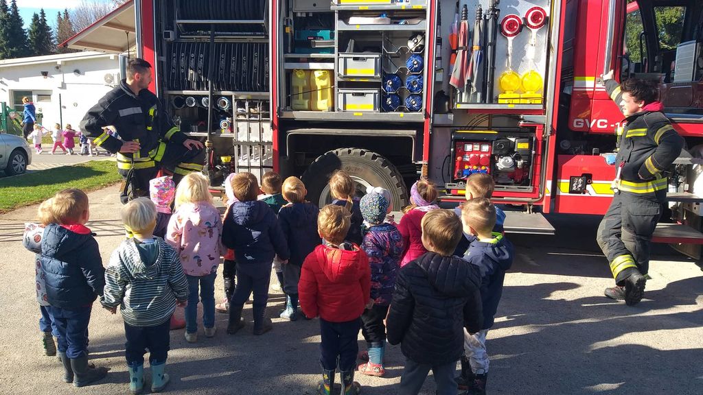 Začelo se je, pridrveli so gasilci in gasilke iz PGD Križe in nam pomagali pri požaru na hodniku enote Križe Vrtca Tržič. Našli so vse osebe in jih uspešno rešili iz goreče stavbe. Ker je gorelo na hodniku, je morala ena od skupin vrtec zapusti kar skozi okno. Prešteli smo se in spoznali, da smo vsi na varnem. Še dobro, da je bila samo vaja, ki smo jo uspešno zaključili.