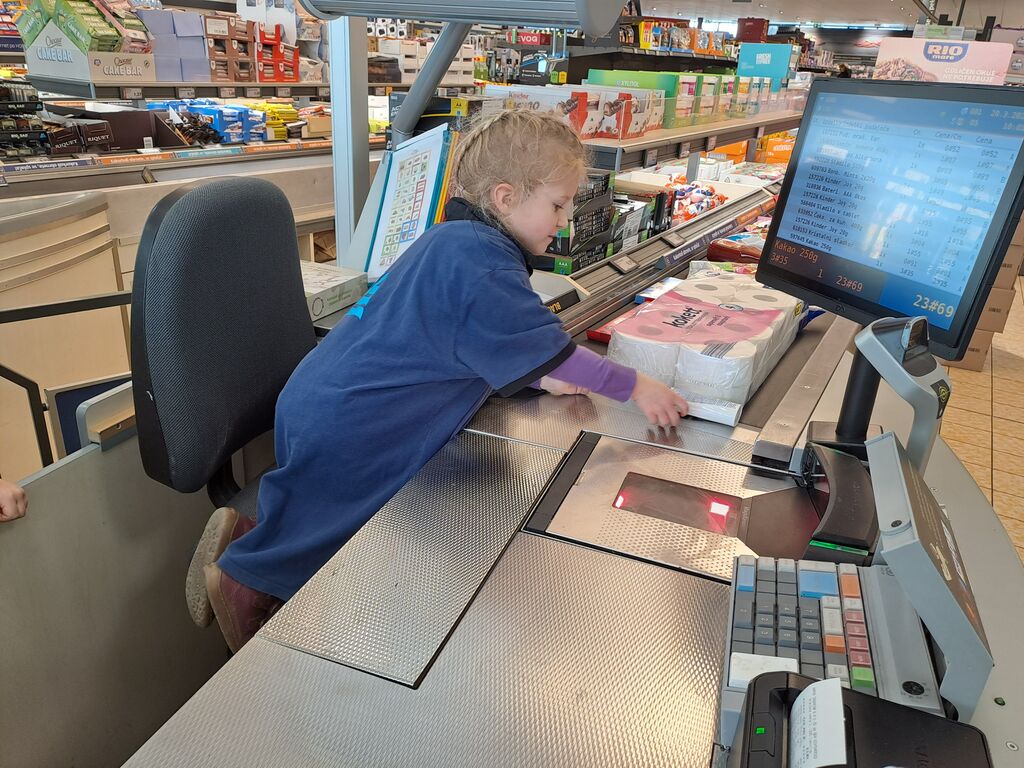 preizkusili v vlogi prodajalca. Otroci so z zanimanjem spremljali vsak korak