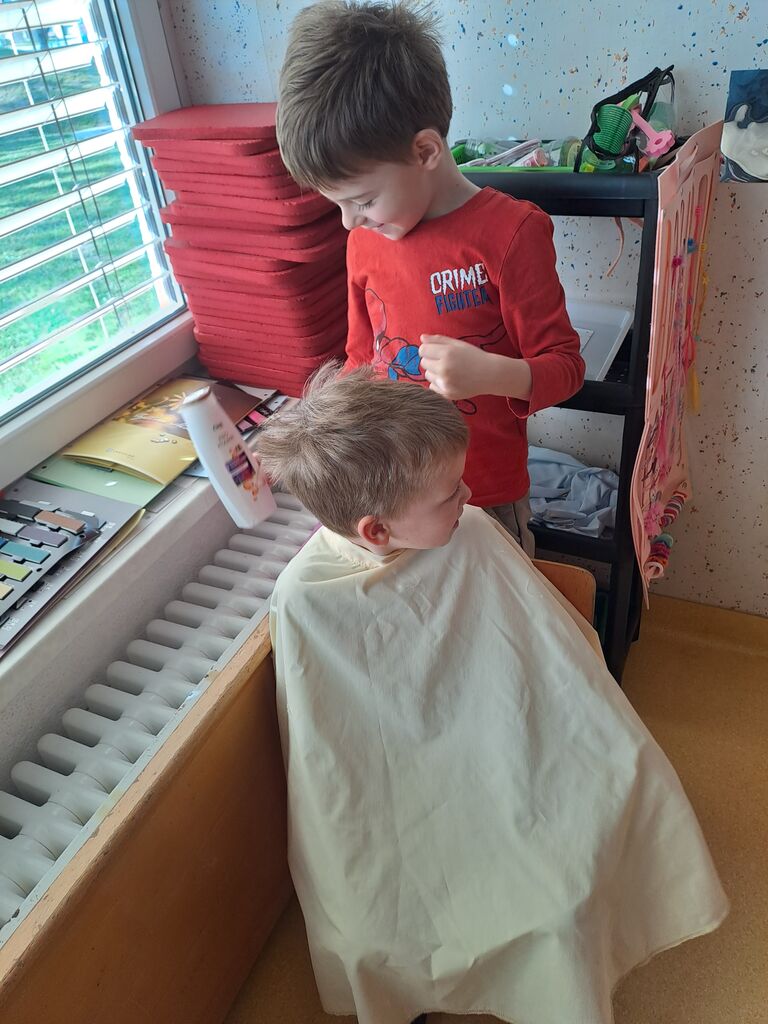 otroci in jih je pozdravil prijazni zdravnik. Oblikovali smo kotiček »frizerski