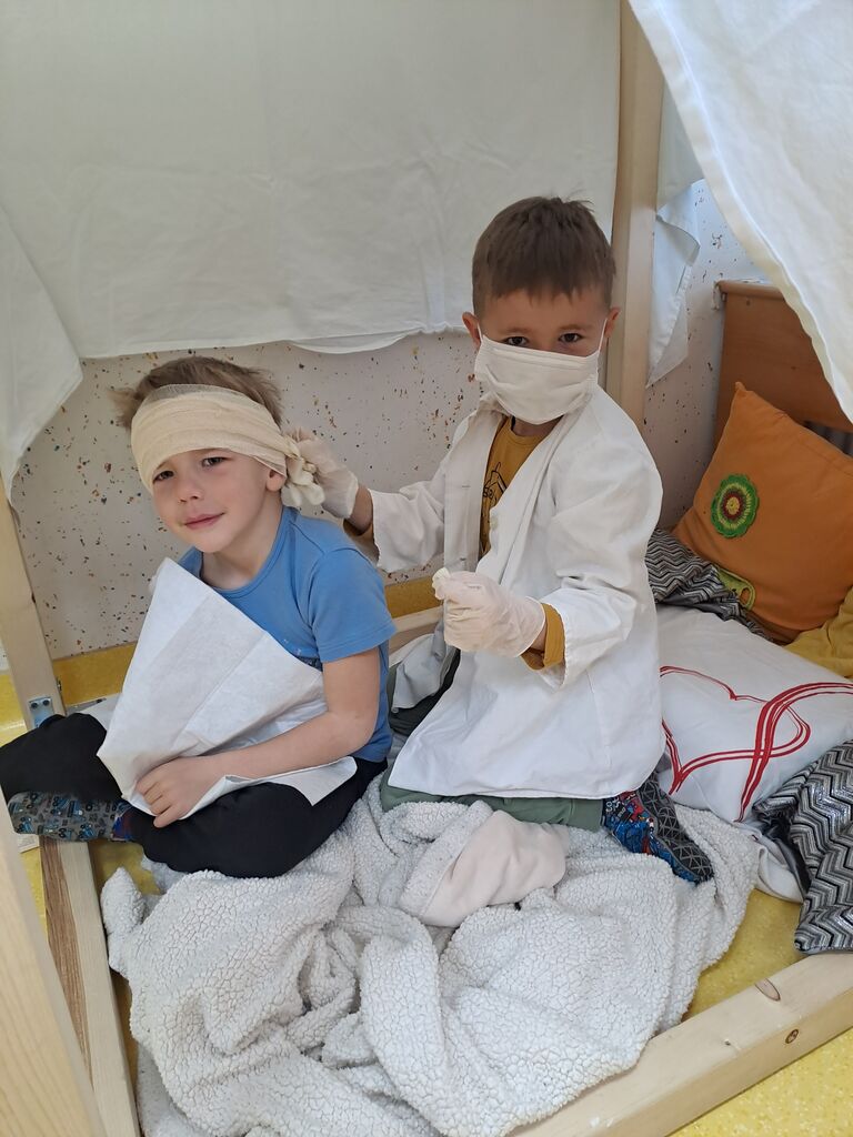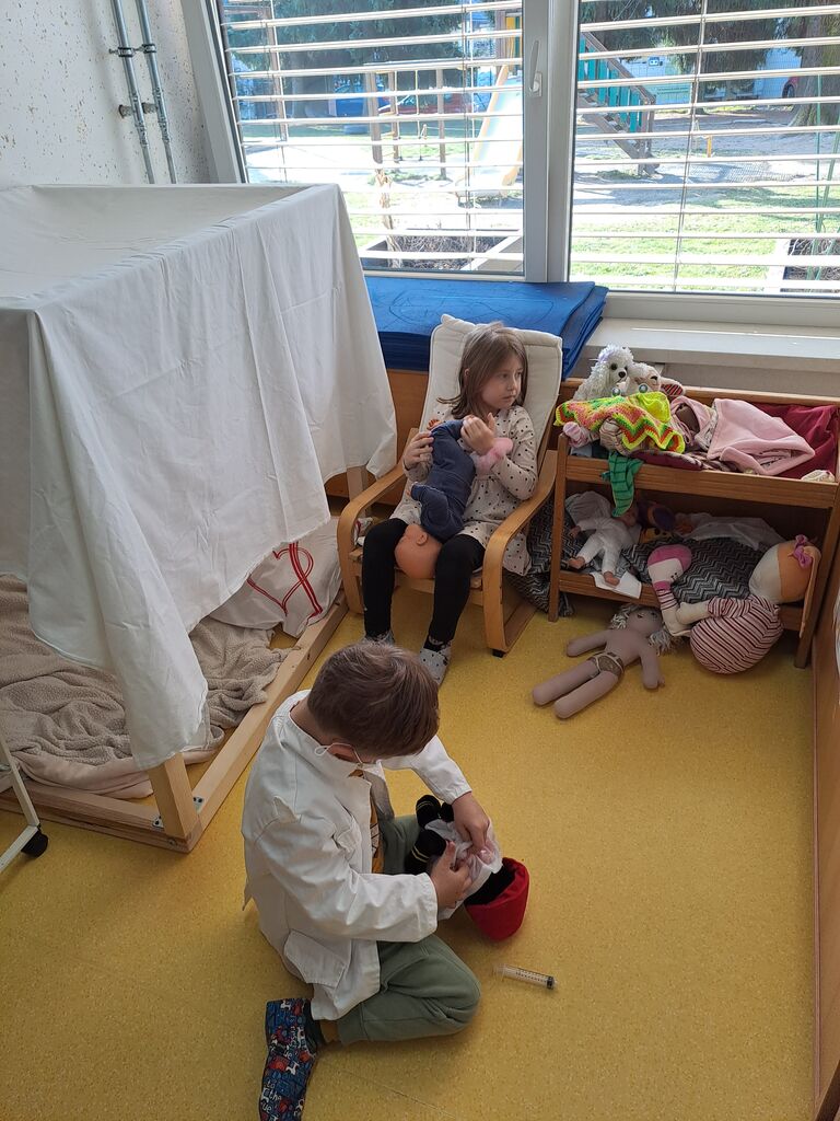 Najprej je nastal kotiček »bolnišnica«, v katero so hodili bolni in poškodovani