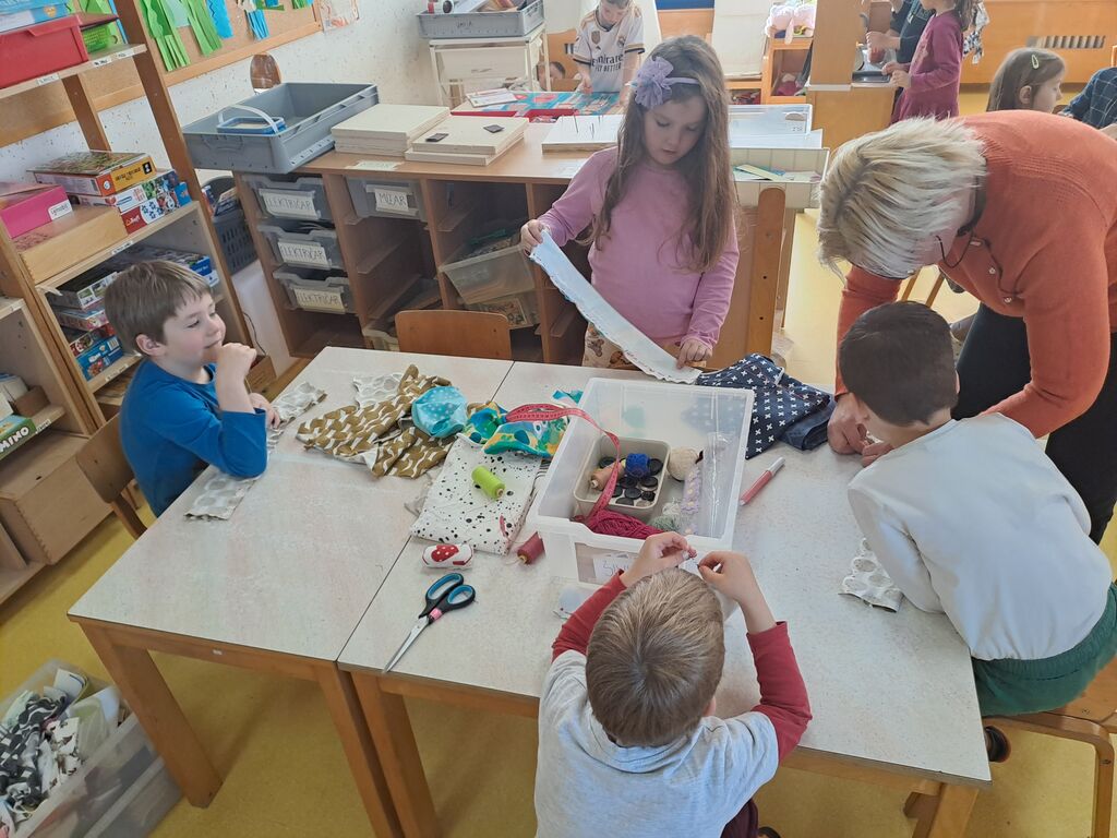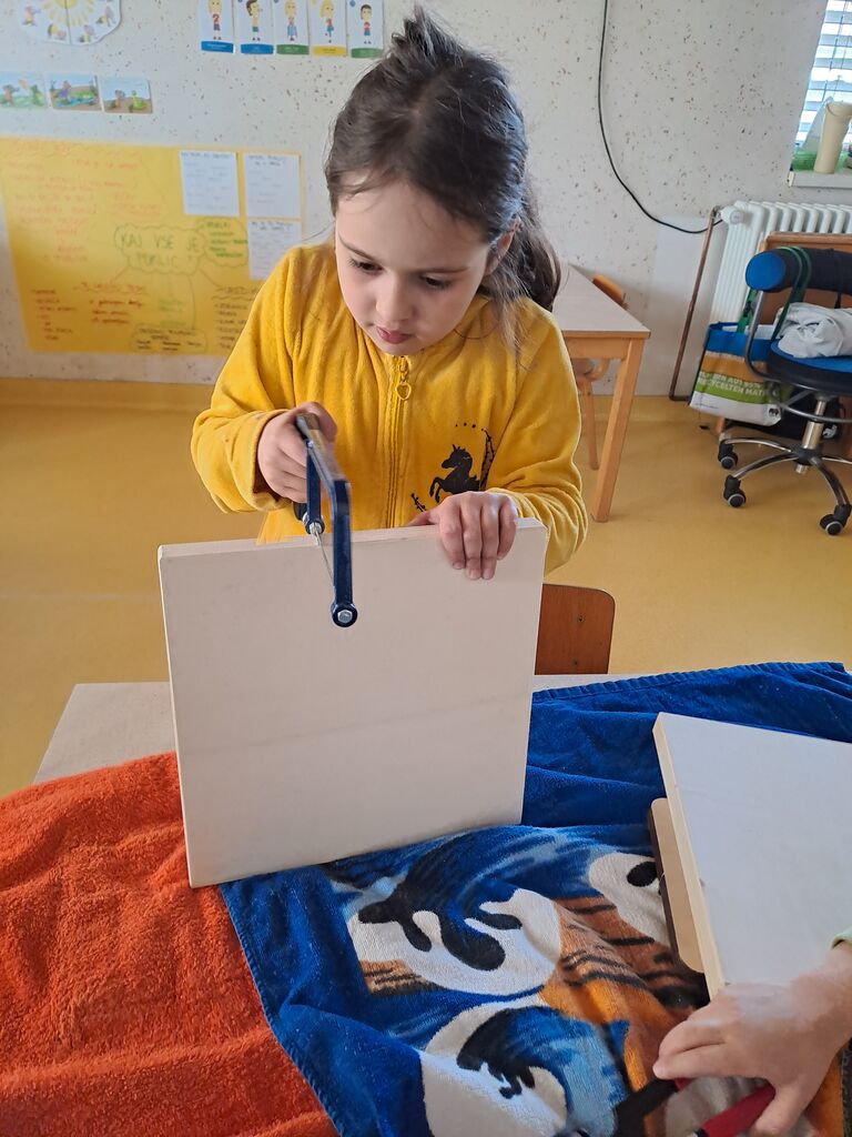 in sukancem. Nekaj otrok si je zašilo trak za ušesa. »Mizarstvo« smo popestrili