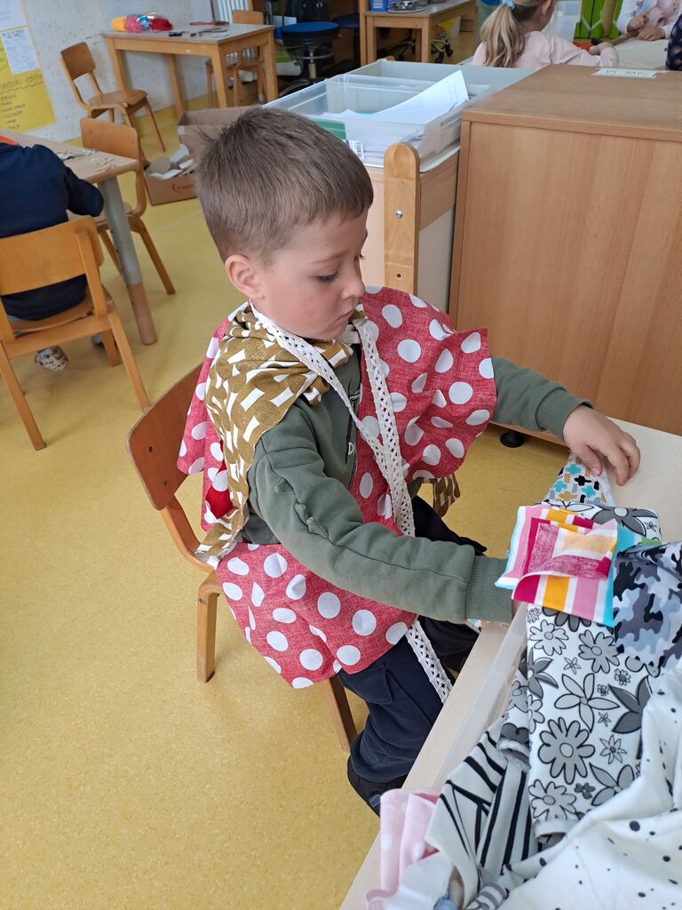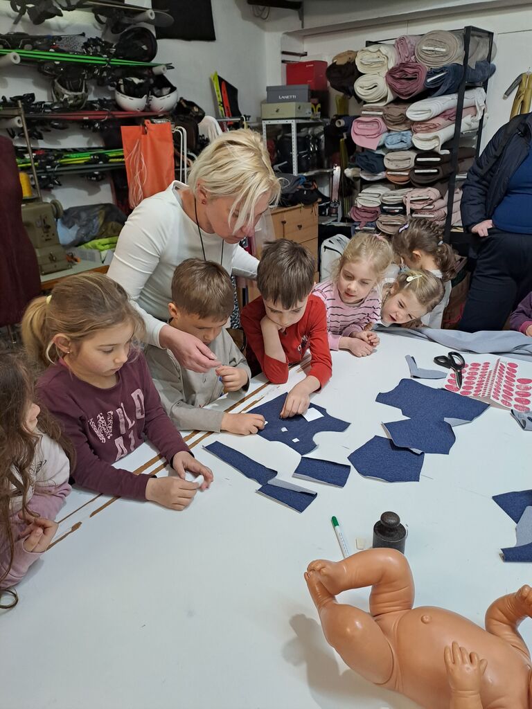 izrezali in nato še zašili, nastala so oblačila za dojenčka. Obiskal nas je oči