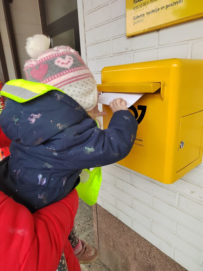 Otroci so izdelali svoje poštne nabiralnike ter pripravili pravo razstavo unikatnih izdelkov. Na sprehodih po bližnji okolici smo iskali poštne nabiralnike. Ogledali pa smo si tudi dve pošti.