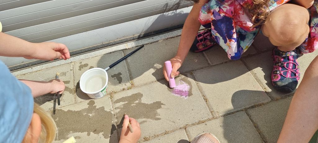 Risanje s kredami in vodo: Skupno ustvarjanje na toplih tleh.