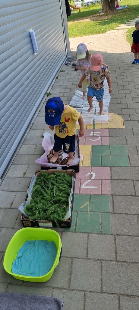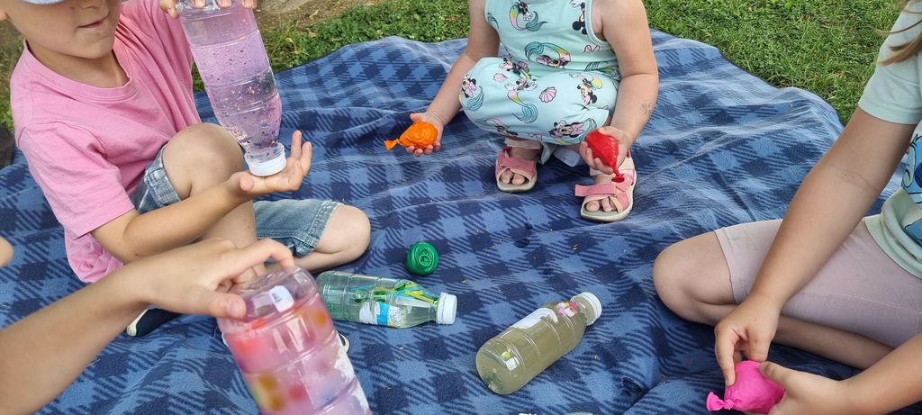 Naše igrišče se je za en dan prelevilo v pravo senzorno kraljestvo, kjer so čevlji postali nepotrebni, voda dragocen raziskovalni material, in kjer so barve, zvoki ter teksture dobile glavno vlogo.