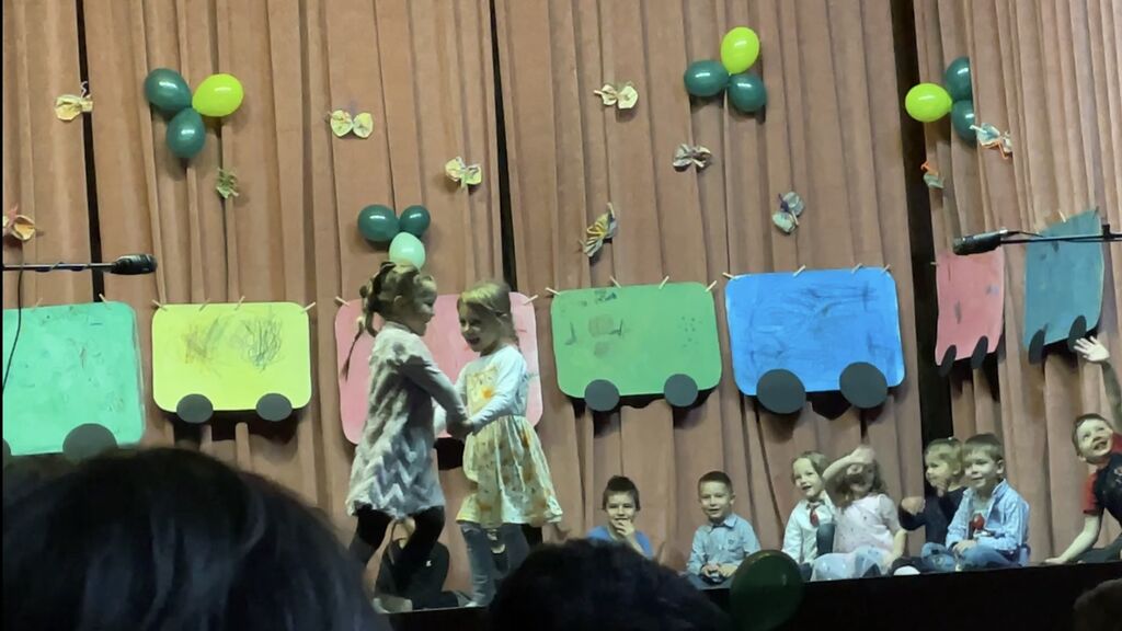 Pod mentorskim vodstvom prizadevnih vzgojiteljic Marije, Katje in Kaje so nas popeljali z vlakom igre in ustvarjalnosti. Na vsaki postaji so predstavili igrano, glasbeno, plesno, recitatorsko točko. Dokazali so, da domišljija ne pozna meja. Otroci so bili v nastopih sproščeni, iskreni, ustvarjalni. V njihovih očeh je sijal ponos, ker so nastopili na čisto »pravem« odru.