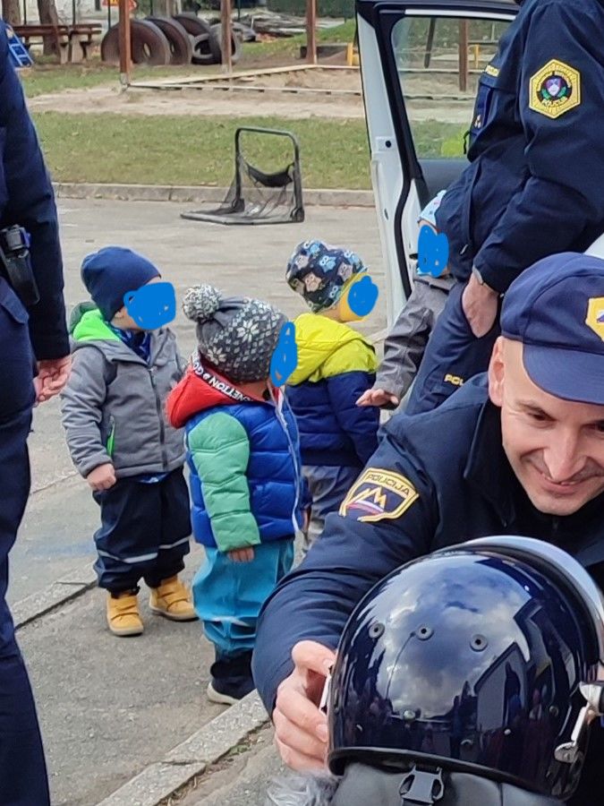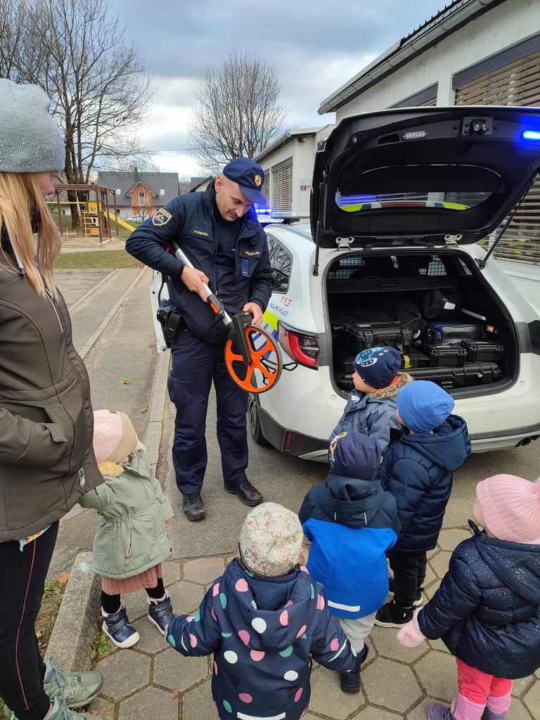 V sklopu skupnega projekta v najmlajših oddelkih enote Križe, Kdo se vozi po cesti?, so nas poleg gasilcev in reševalcev obiskali tudi policisti Policijske postaje Tržič. V enoto Križe so se pripeljali v sredo, 29. 11. 2023.